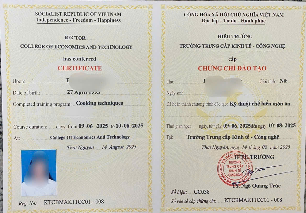 Keywords: Chứng chỉ, Kỹ thuật chế biến món ăn, trực tuyến, trực tiếp, Trung cấp kinh tế - công nghệ, tuyển sinh, khai giảng, mở lớp