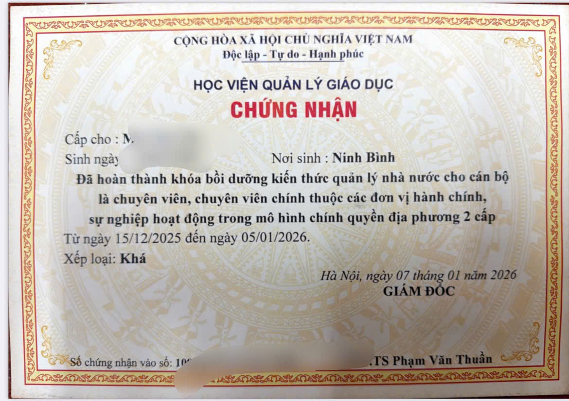 Keywords: Chứng nhận, chuyên viên, chuyên viên chính, Học viện quản lý Giáo dục