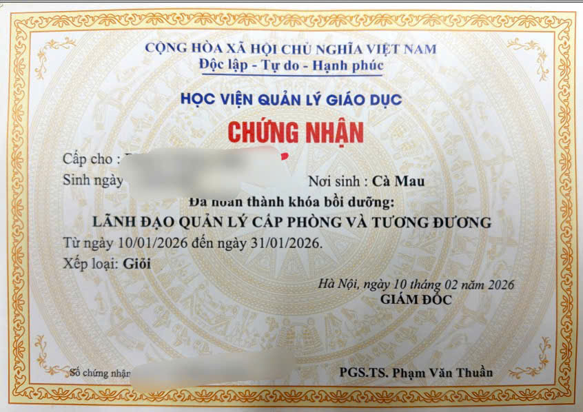 Keywords: Chứng nhận, chuyên viên, chuyên viên chính, Học viện quản lý Giáo dục, lãnh đạo cấp phòng